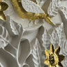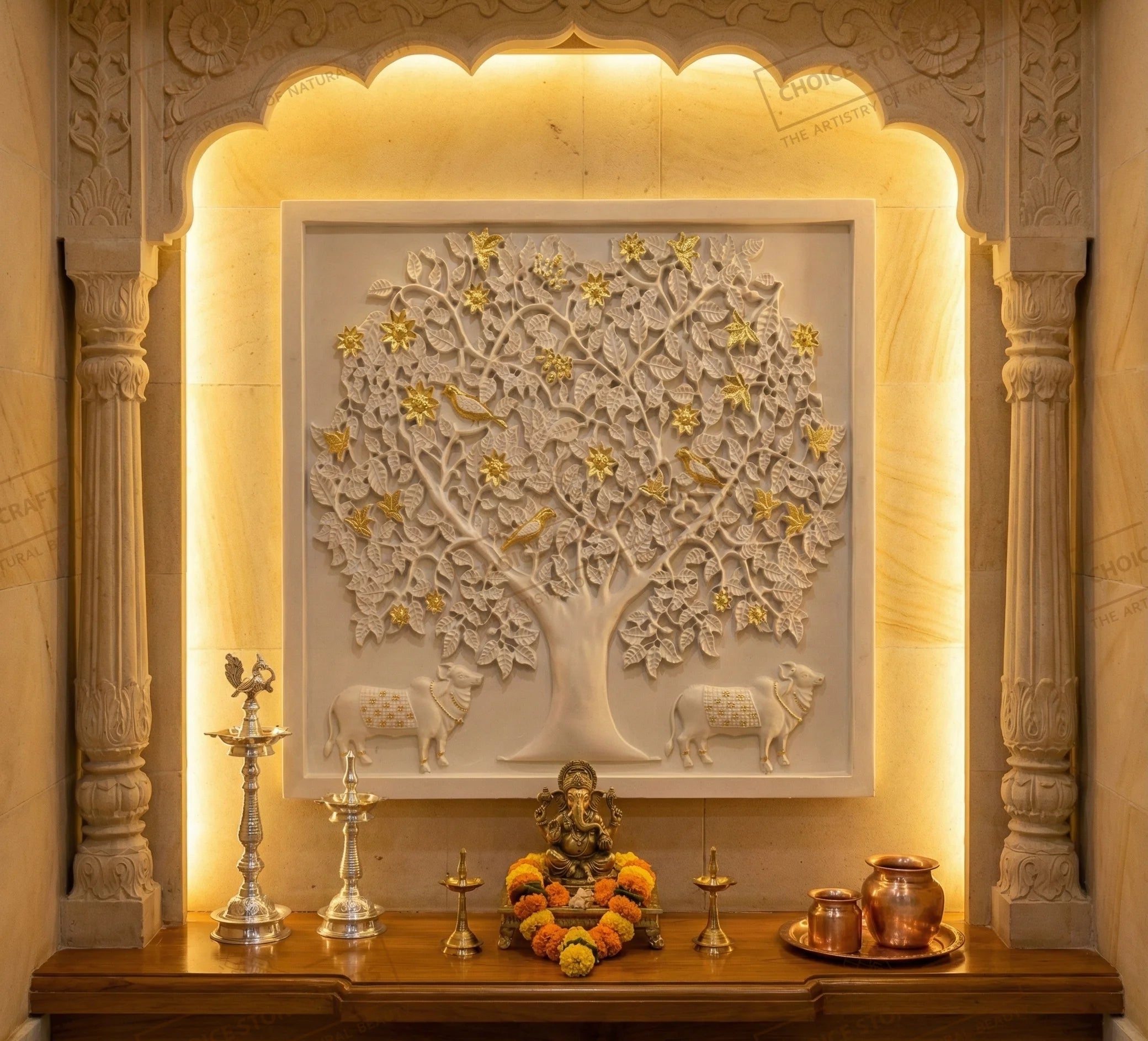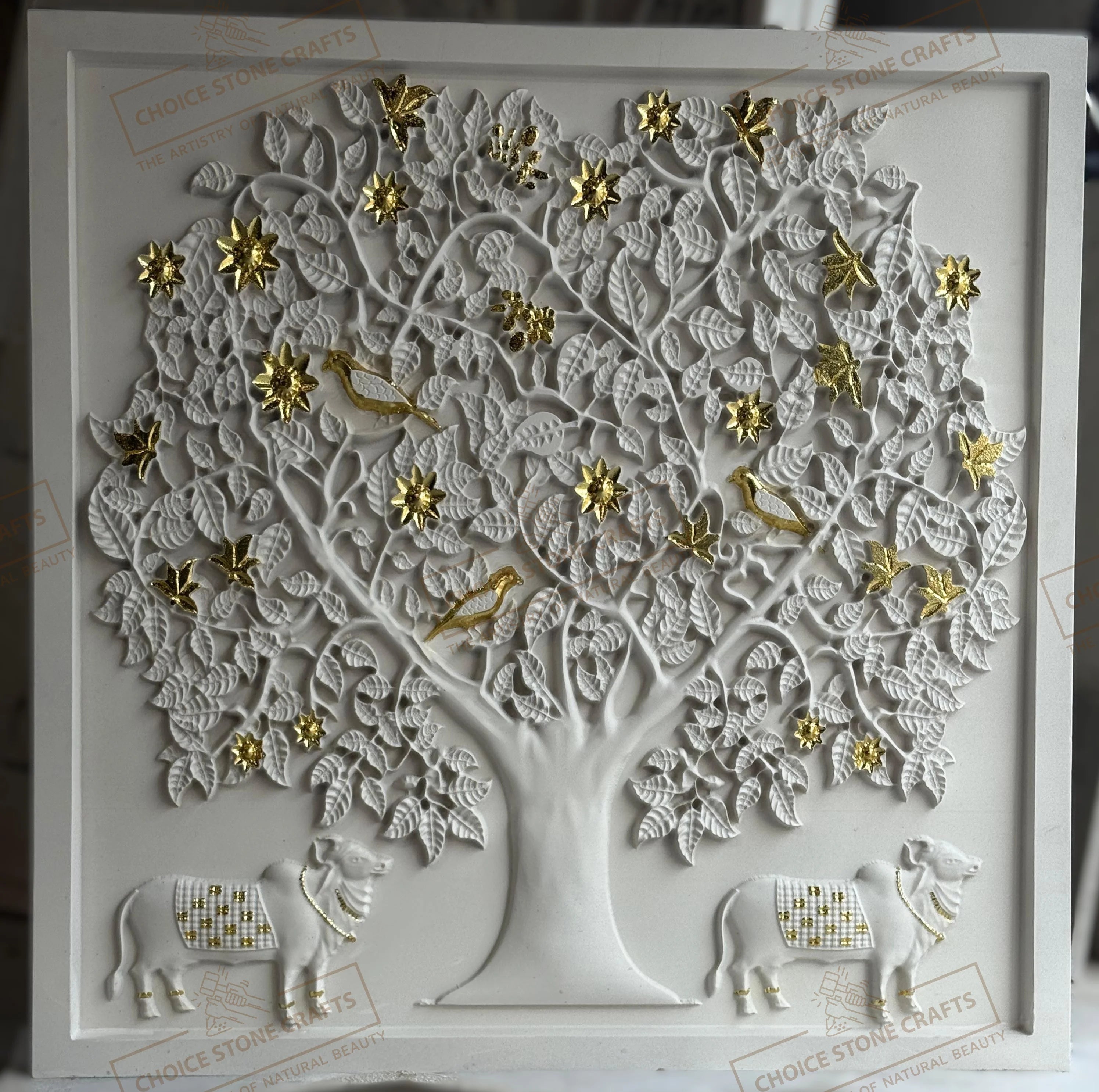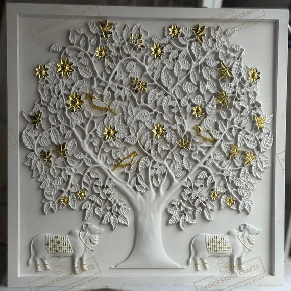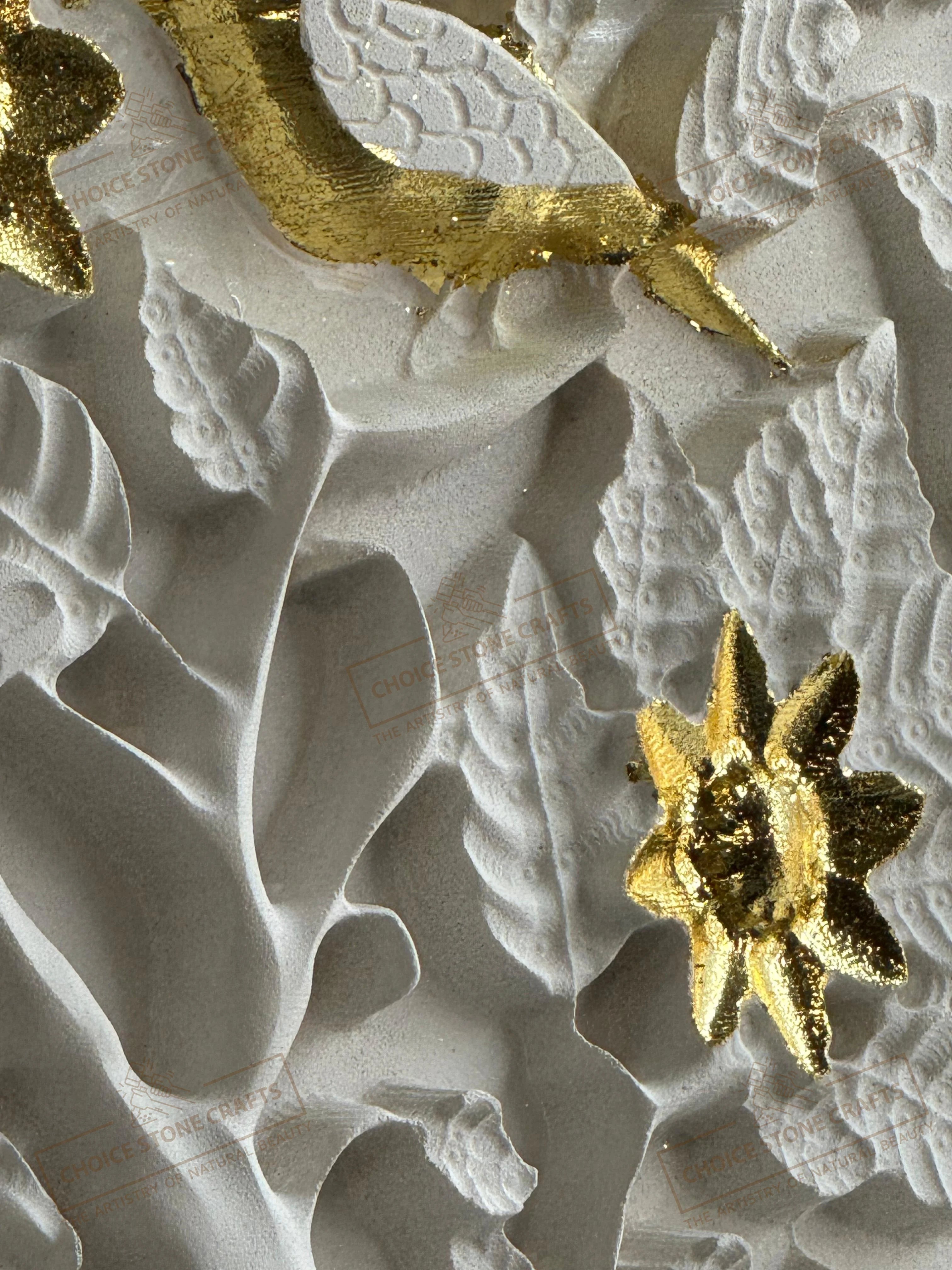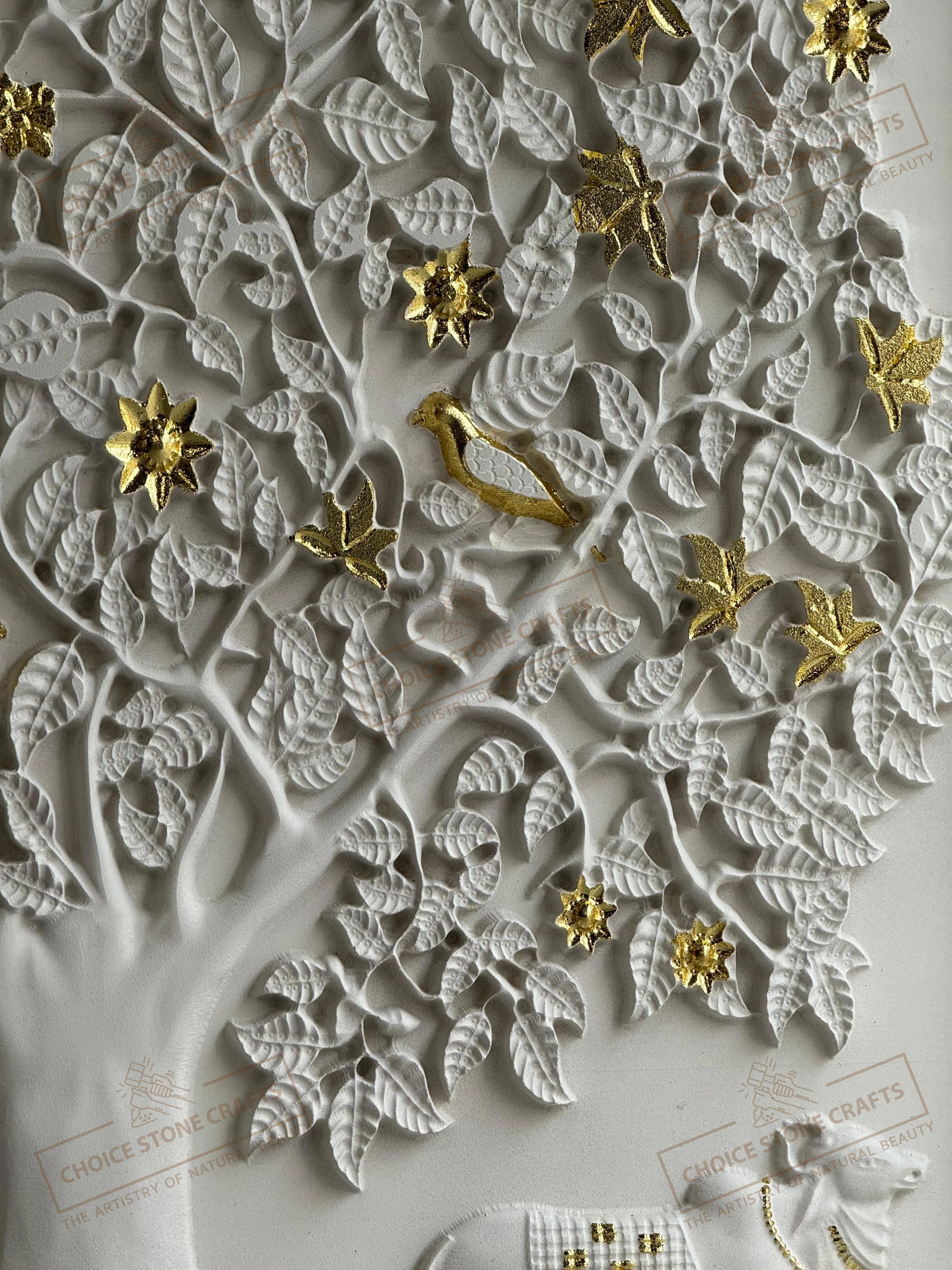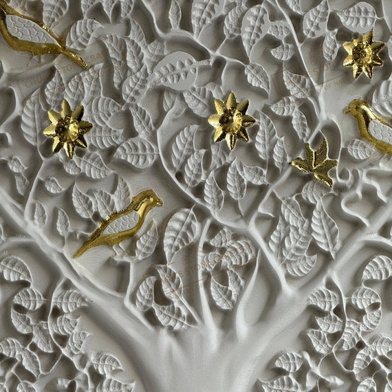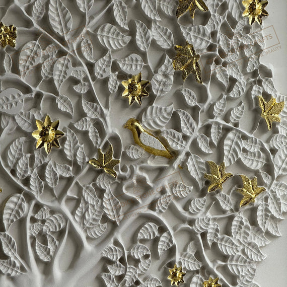 | MATERIAL: White Natural Stone with Gold Leafing Work |