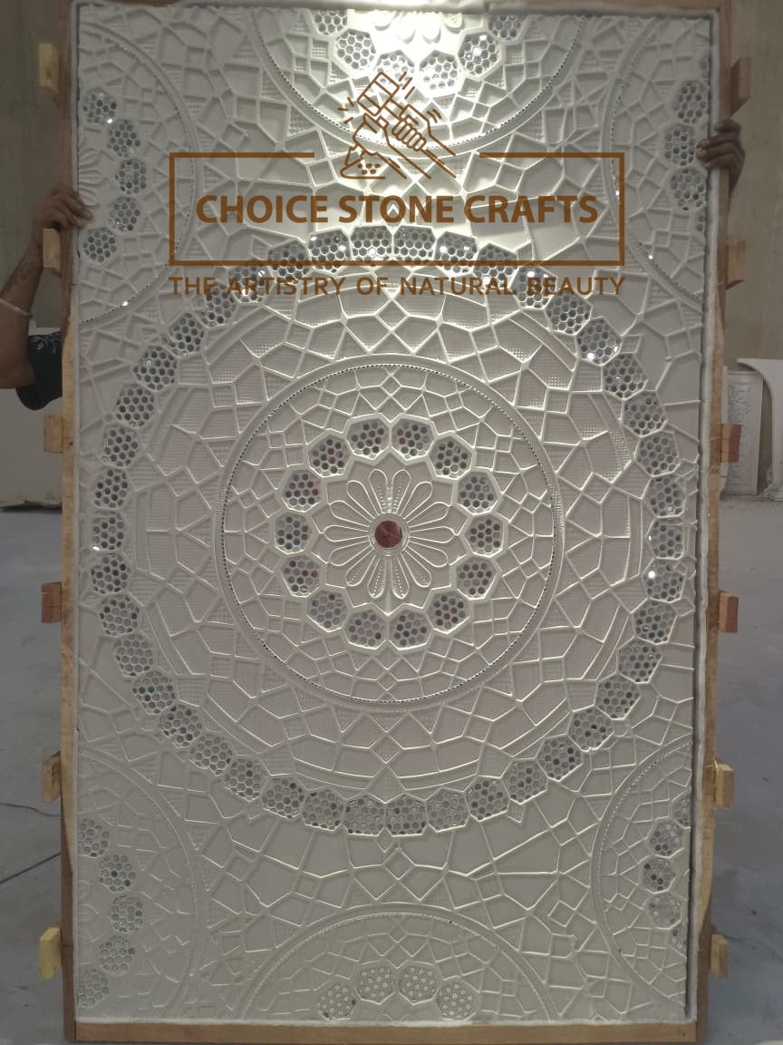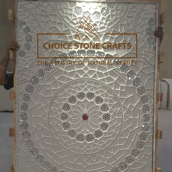 Temple Back Wall Marble Stone Carving Om Ganeshji